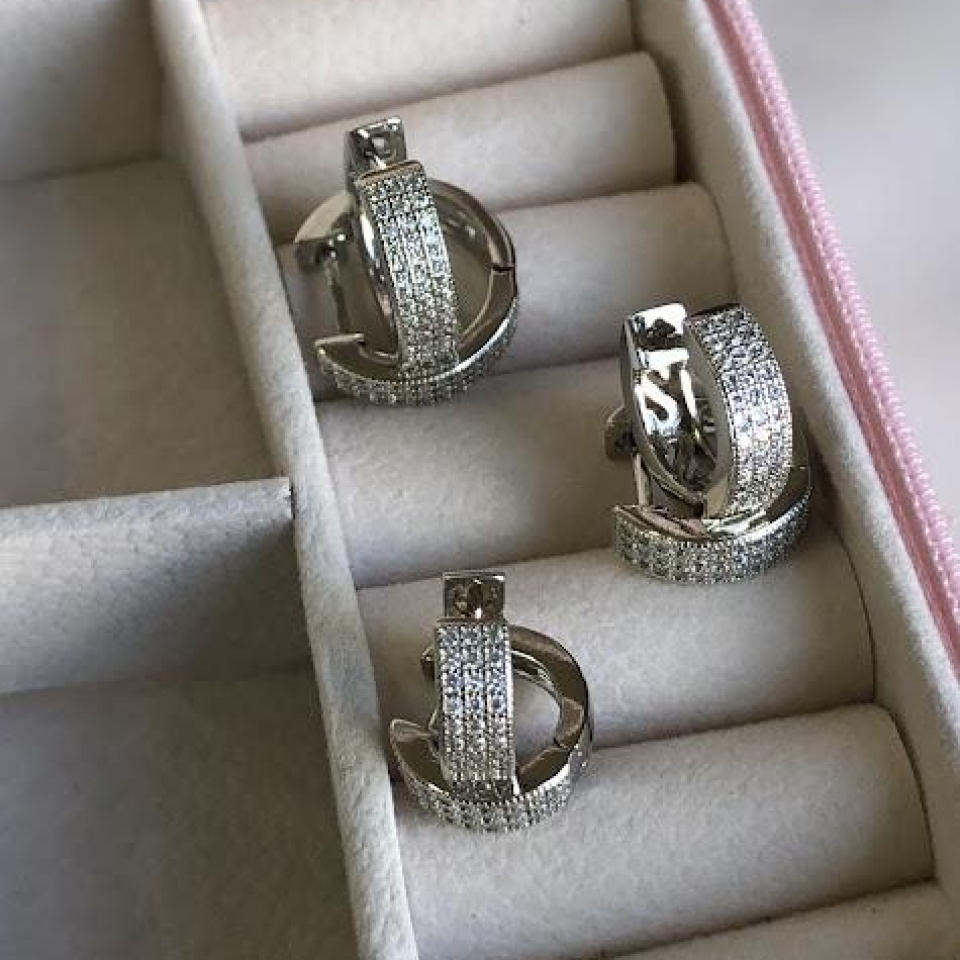 Trio de Brincos Formato de V com Detalhes ...